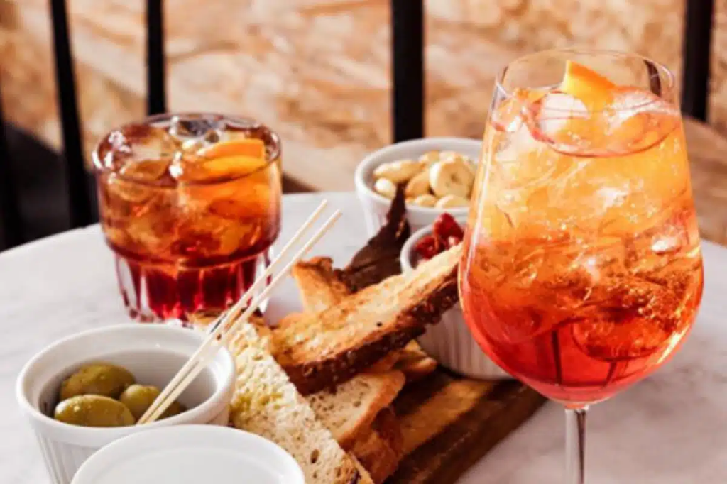 イタリアでは、夕方(午後6時〜8時ごろ)に友人や同僚と集まり、軽いおつまみと1〜2杯のお酒を楽しむのが一般的🍹